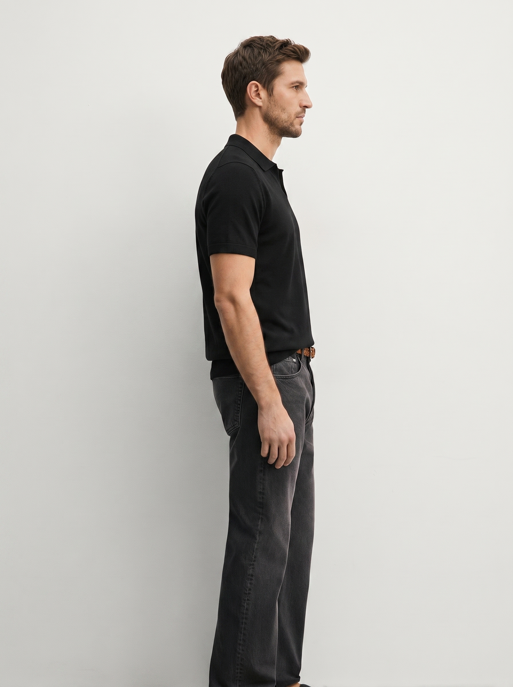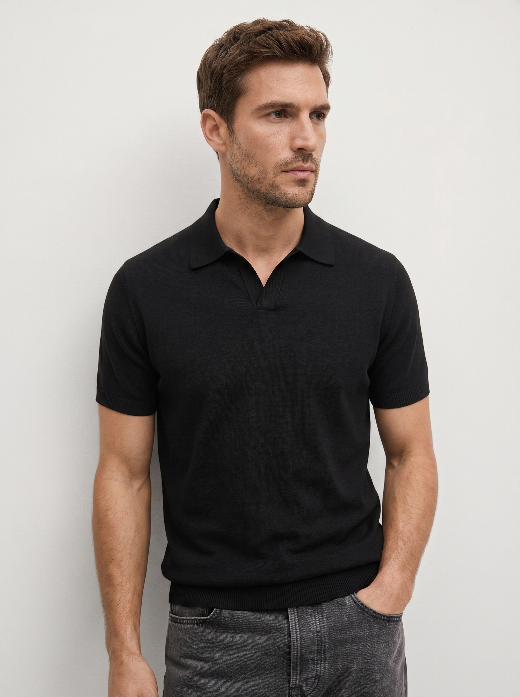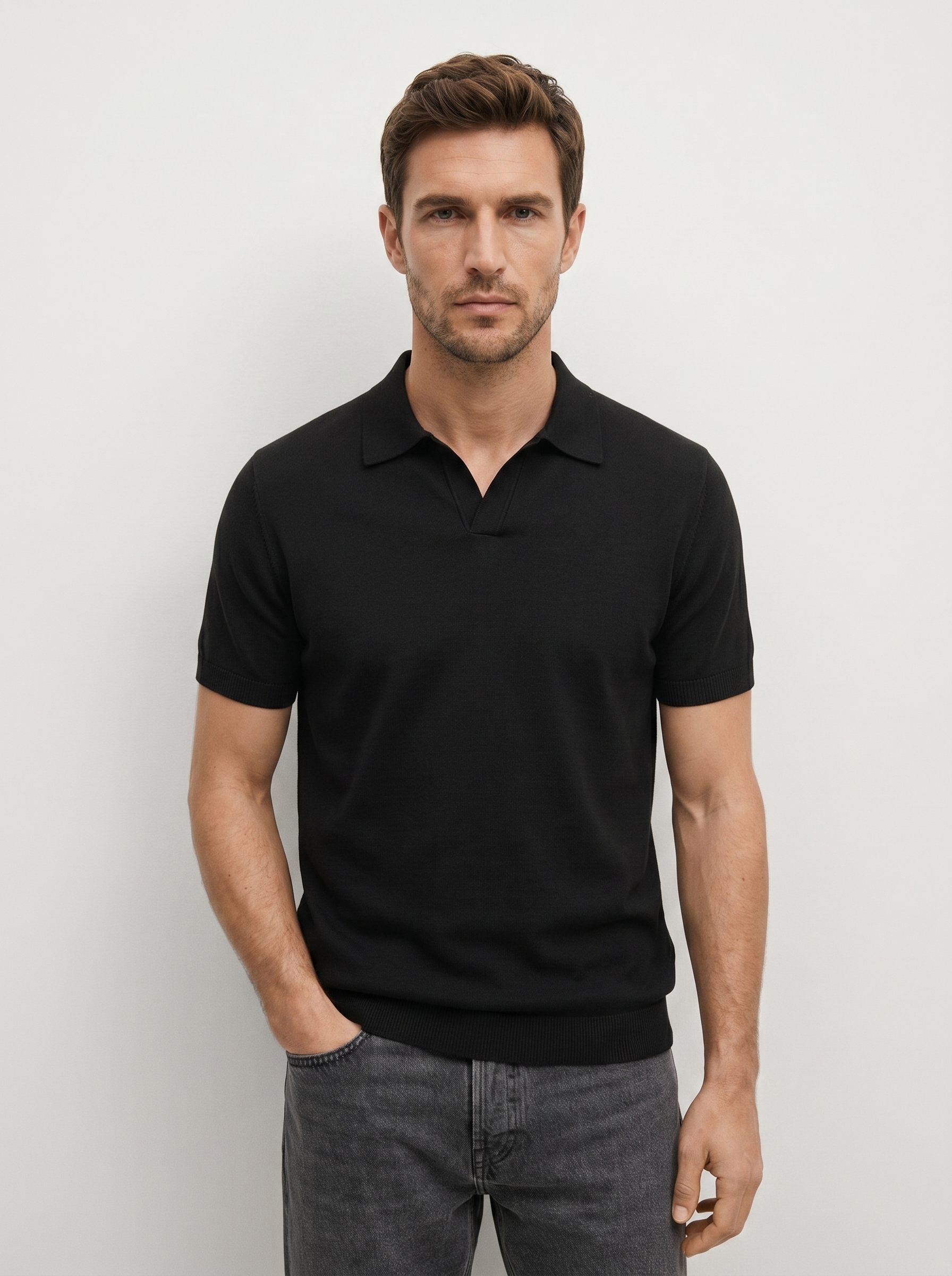 Elegantiški juodi megzti polo marškinėliai – tai aukštesnio lygio kasdienis stilius. Švelni, tekstūrinė medžiaga suteikia prabangos pojūtį, o minimalistinis dizainas be sagų atrodo moderniai ir švariai. Puikiai priglundantis siluetas subtiliai pabrėžia kūno linijas.