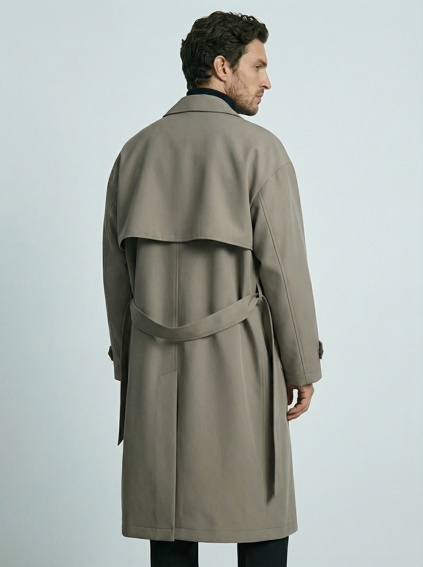 Klasikinio dizaino vyriškas trench tipo paltas – elegancijos ir modernumo derinys kasdienai.