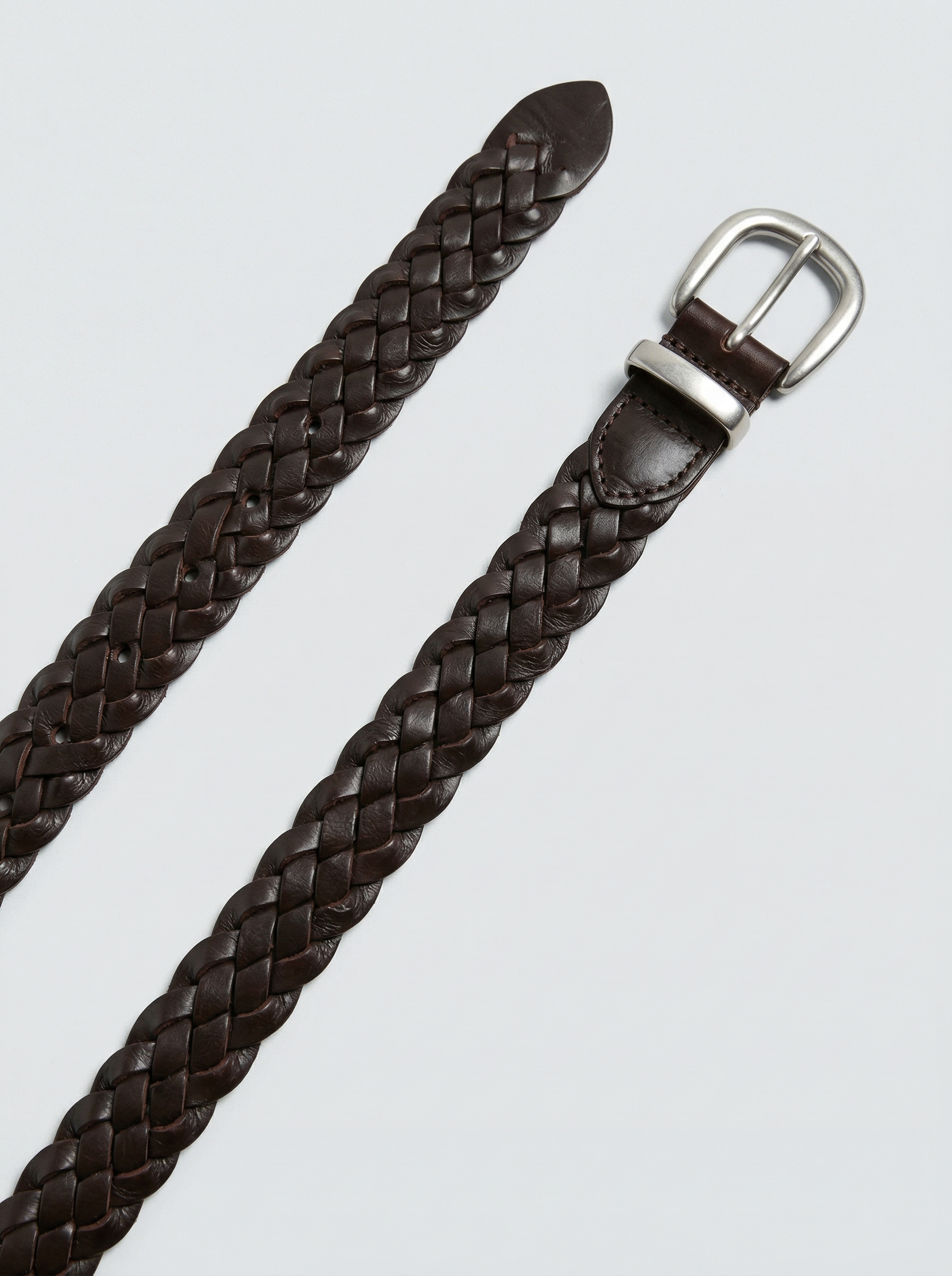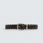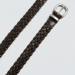 Šilta spalva ir subtili tekstūra kuria natūralų, rafinuotą įvaizdį. Pintas natūralios odos diržas lengvai prisitaiko prie silueto ir suteikia deriniui lengvos elegancijos.